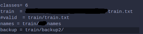 .data파일은 클래스 개수, .txt파일의 경로, .names 파일의 경로, weight파일 저장할 경로 등을 저장한 파일입니다.