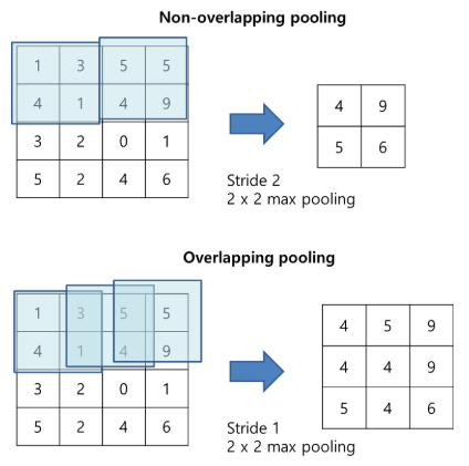 - 커널의 크기 z x z라 하고 stride를 s라 할 때 s = z인 경우 우리가 아는 일반적인 non-overlapping pooling이 된다. s < z인 경우 overlapping pooling이 되며 overlapping pooling을 사용했을 때 성능이 좀 더 개선되었다.