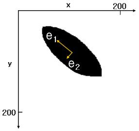 주성분 분석, PCA(Principal Component Analysis)란 분포된 데이터들의 주성분을 찾아주는 방법. 아래와 같은 2차원 좌표평면에 n개의 점 데이터가 타원형으로 분포되어 있을 때 이 데이터들의 분포 특성을 2개의 벡터로 가장 잘 설명하는 것을 의미한다. 즉 e1, e2 두개의 벡터로 데이터 분포를 설명하는 것으로 e1의 방향과 크기, e2의 방향과 크기를 알면 이 데이터 분포가 어떤 형태인지 파악할 수 있다. 여기서 주성분 벡터는 서로 수직이다.