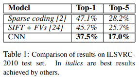- deep convolution neural network를 학습시켜 ILSVRC-2010에서 SOTA를 달성하였다.