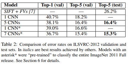 - ILSVRC-2012 competition에서도 2위와 큰 격차를 내며 SOTA를 달성하였다.