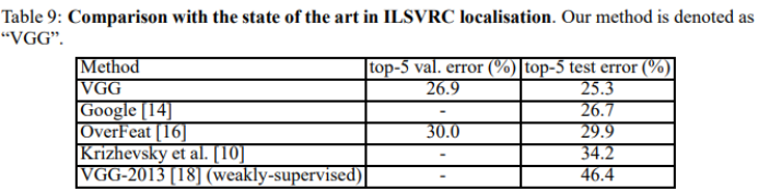 localization task에서 VGG를 다른 모델과 비교