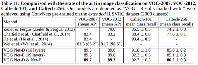 - *(asterisk) 달린 모델은 class 2000개짜리 ILSVRC dataset으로 pre-training시킨 모델