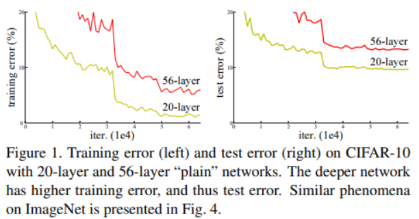 - Layer를 더 많이 사용했는데 degradation으로 인해 오히려 error가 더 높음