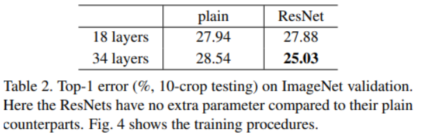 - 이 실험에서 plain network의 성능이 안 좋은 이유는 degradation문제가 아니고 단지 제안하는 solution을 적용했을 때 잘 작동한다는 것을 보여주는 결과임