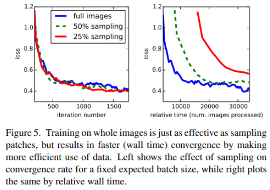 실험에서 patch sampling 방식과 full image 방식을 비교하였는데 sampling 방식이 loss 수렴 속도도 늦고 학습 속도도 더 오래 걸린다. 결과적으로 full image 방식을 사용하여 학습하였다.
