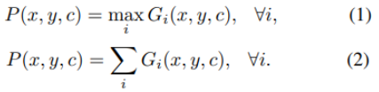 i 번째 proposal에 대한 WxHxC output score map이 나왔을 때 해당 score map에 zero-padding을 추가하여 original image와 동일한 사이즈로 만들어준다. 각 proposal에서 나온 모든 score map을 모두 더하거나 혹은 max값만 취하여 aggregating한다. (1), 또는 (2)번 수식을 사용한다.